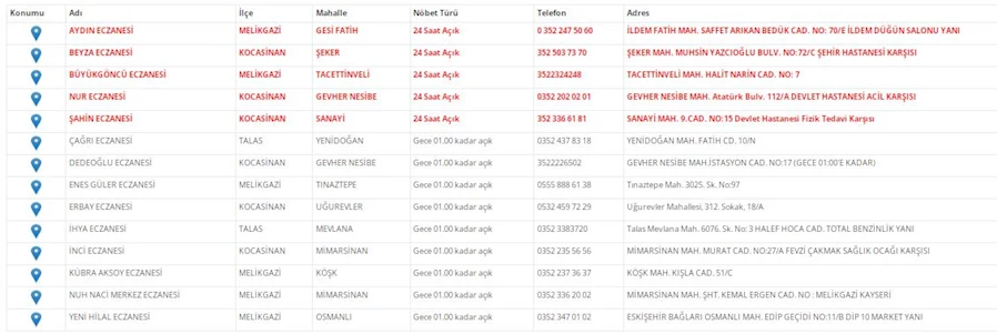 Kayseri'de vatandaşların acil sağlık ihtiyaçları için nöbetçi eczaneler önemli bir yere sahip. Kayseri’nin bugünkü nöbetçi eczanelerini sizler için derledik. 20 Temmuz Pazar nöbetçi eczaneler listesine buradan ulaşabilirsiniz. İşte 20 Temmuz nöbetçi eczaneler…