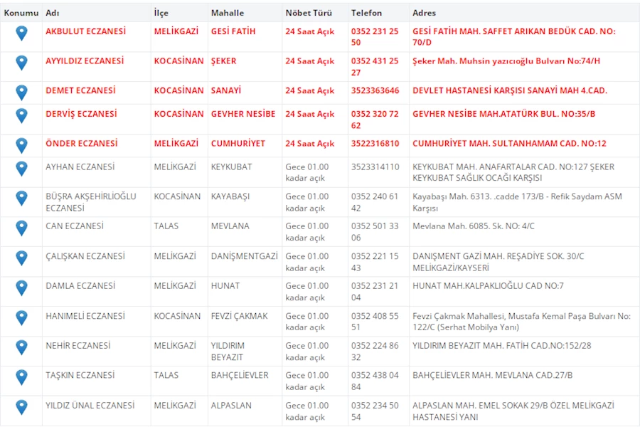 Kayseri'de hizmet verecek nöbetçi eczane listesini sizler için derledik. Şehirde 17 Aralık 2025 tarihinde 14 eczane akşam hizmet verecek. Detaylar Kayseri Haber'de...
