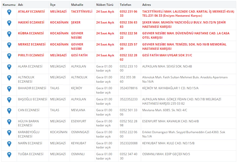 Kayseri'de vatandaşların acil sağlık ihtiyaçları için nöbetçi eczaneler önemli bir yere sahip. Kayseri’nin bugünkü nöbetçi eczanelerini sizler için derledik. 22 Eylül Pazartesi nöbetçi eczaneler listesine buradan ulaşabilirsiniz. İşte 22 Eylül nöbetçi eczaneler…