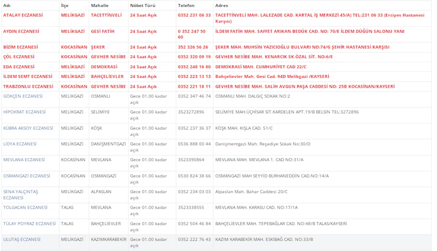 Kayseri'de vatandaşların acil sağlık ihtiyaçları için nöbetçi eczaneler önemli bir yere sahip. Kayseri’nin bugünkü nöbetçi eczanelerini sizler için derledik. 23 Kasım Cumartesi nöbetçi eczaneler listesine buradan ulaşabilirsiniz. İşte 23 Kasım nöbetçi eczaneler…