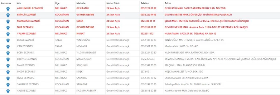 Kayseri'de vatandaşların acil sağlık ihtiyaçları için nöbetçi eczaneler önemli bir yere sahip. Kayseri’nin bugünkü nöbetçi eczanelerini sizler için derledik. 23 Mart Pazar nöbetçi eczaneler listesine buradan ulaşabilirsiniz. İşte 23 Mart nöbetçi eczaneler…