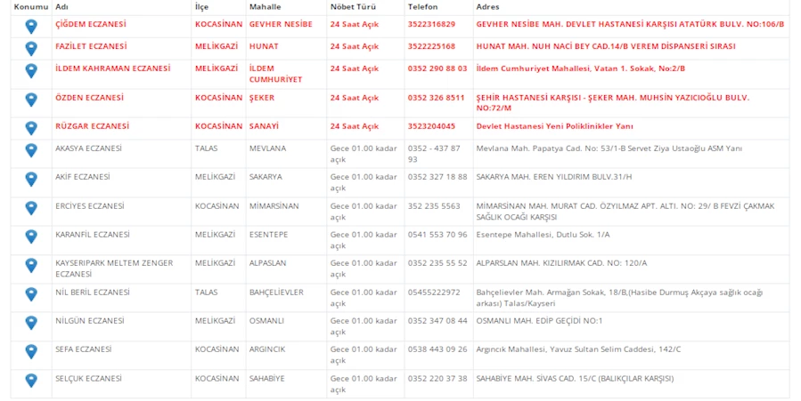 Kayseri'de vatandaşların acil sağlık ihtiyaçları için nöbetçi eczaneler önemli bir yere sahip. Kayseri’nin bugünkü nöbetçi eczanelerini sizler için derledik. 24 Nisan Perşembe nöbetçi eczaneler listesine buradan ulaşabilirsiniz. İşte 24 Nisan nöbetçi eczaneler…