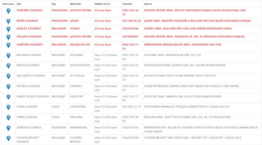 Kayseri'de vatandaşların acil sağlık ihtiyaçları için nöbetçi eczaneler önemli bir yere sahip. Kayseri’nin bugünkü nöbetçi eczanelerini sizler için derledik. 24 Şubat Pazartesi nöbetçi eczaneler listesine buradan ulaşabilirsiniz. İşte 24 Şubat nöbetçi eczaneler…