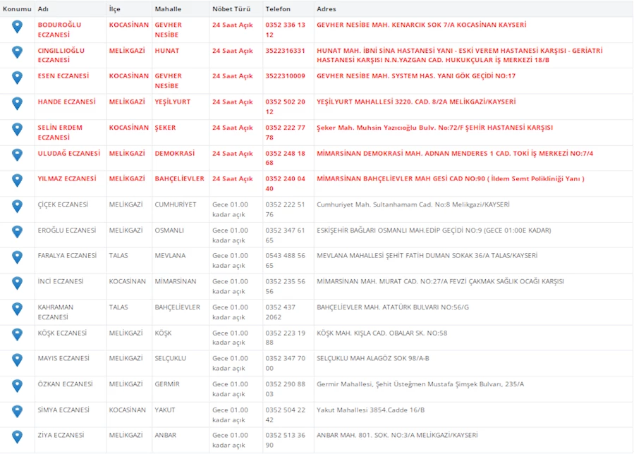 Kayseri'de vatandaşların acil sağlık ihtiyaçları için nöbetçi eczaneler önemli bir yere sahip. Kayseri’nin bugünkü nöbetçi eczanelerini sizler için derledik. 26 Nisan Cumartesi nöbetçi eczaneler listesine buradan ulaşabilirsiniz. İşte 26 Nisan nöbetçi eczaneler…