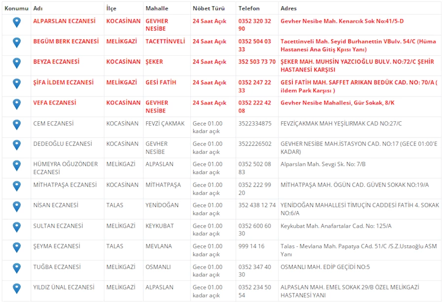 Kayseri'de vatandaşların acil sağlık ihtiyaçları için nöbetçi eczaneler önemli bir yere sahip. Kayseri’nin bugünkü nöbetçi eczanelerini sizler için derledik. 26 Ocak Pazar nöbetçi eczaneler listesine buradan ulaşabilirsiniz. İşte 26 Ocak nöbetçi eczaneler…