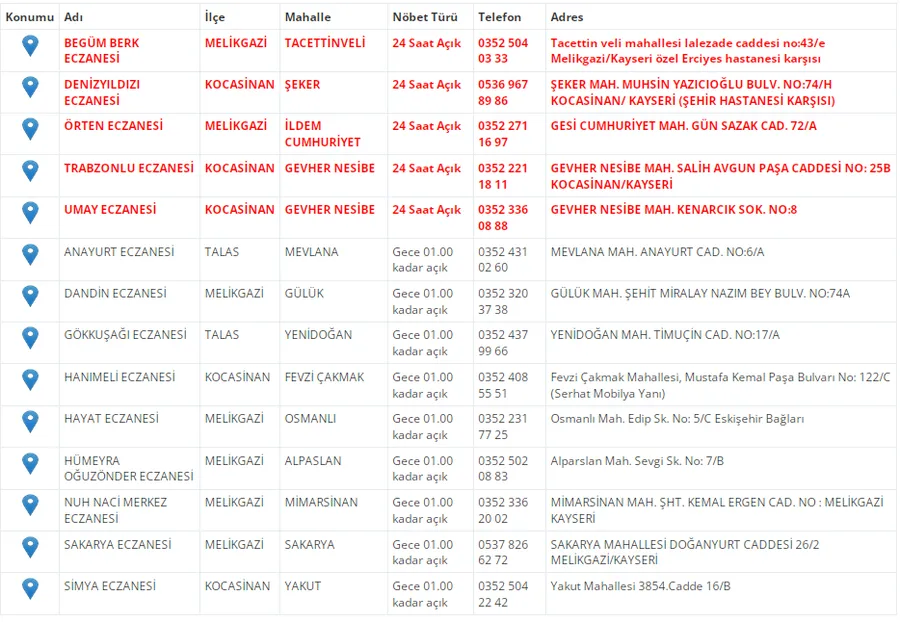 Kayseri'de vatandaşların acil sağlık ihtiyaçları için nöbetçi eczaneler önemli bir yere sahip. Kayseri’nin bugünkü nöbetçi eczanelerini sizler için derledik. 27 Ekim Pazartesi nöbetçi eczaneler listesine buradan ulaşabilirsiniz. İşte 27 Ekim nöbetçi eczaneler…