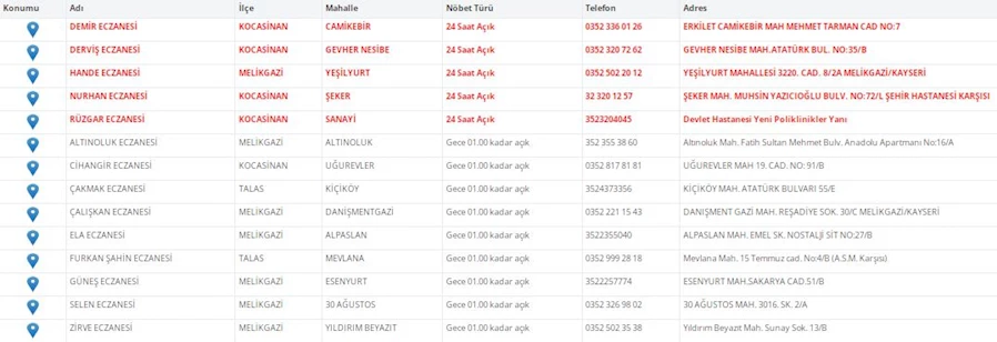 Kayseri'de vatandaşların acil sağlık ihtiyaçları için nöbetçi eczaneler önemli bir yere sahip. Kayseri’nin bugünkü nöbetçi eczanelerini sizler için derledik. 27 Mart Perşembe nöbetçi eczaneler listesine buradan ulaşabilirsiniz. İşte 27 Mart nöbetçi eczaneler…