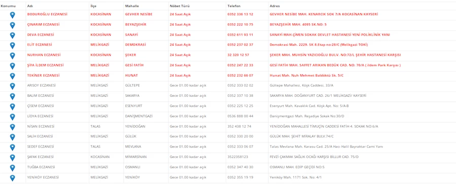 Kayseri'de vatandaşların acil sağlık ihtiyaçları için nöbetçi eczaneler önemli bir yere sahip. Kayseri’nin bugünkü nöbetçi eczanelerini sizler için derledik. 28 Aralık Cumartesi nöbetçi eczaneler listesine buradan ulaşabilirsiniz. İşte 28 Aralık nöbetçi eczaneler…