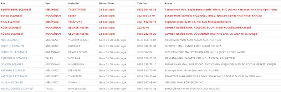 Kayseri'de vatandaşların acil sağlık ihtiyaçları için nöbetçi eczaneler önemli bir yere sahip. Kayseri’nin bugünkü nöbetçi eczanelerini sizler için derledik. 28 Kasım Perşembe nöbetçi eczaneler listesine buradan ulaşabilirsiniz. İşte 28 Kasım nöbetçi eczaneler…