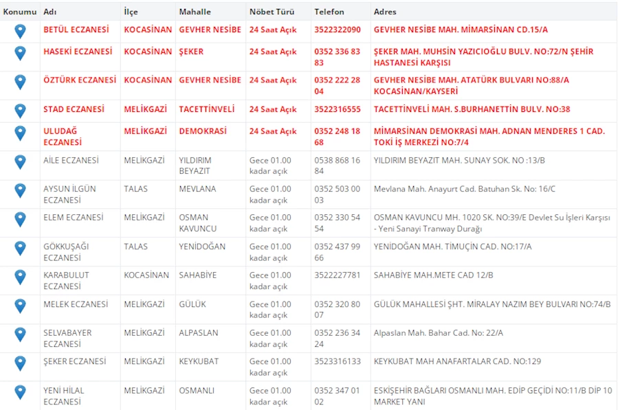 Kayseri'de vatandaşların acil sağlık ihtiyaçları için nöbetçi eczaneler önemli bir yere sahip. Kayseri’nin bugünkü nöbetçi eczanelerini sizler için derledik. 28 Mayıs Çarşamba nöbetçi eczaneler listesine buradan ulaşabilirsiniz. İşte 27 Mayıs nöbetçi eczaneler…