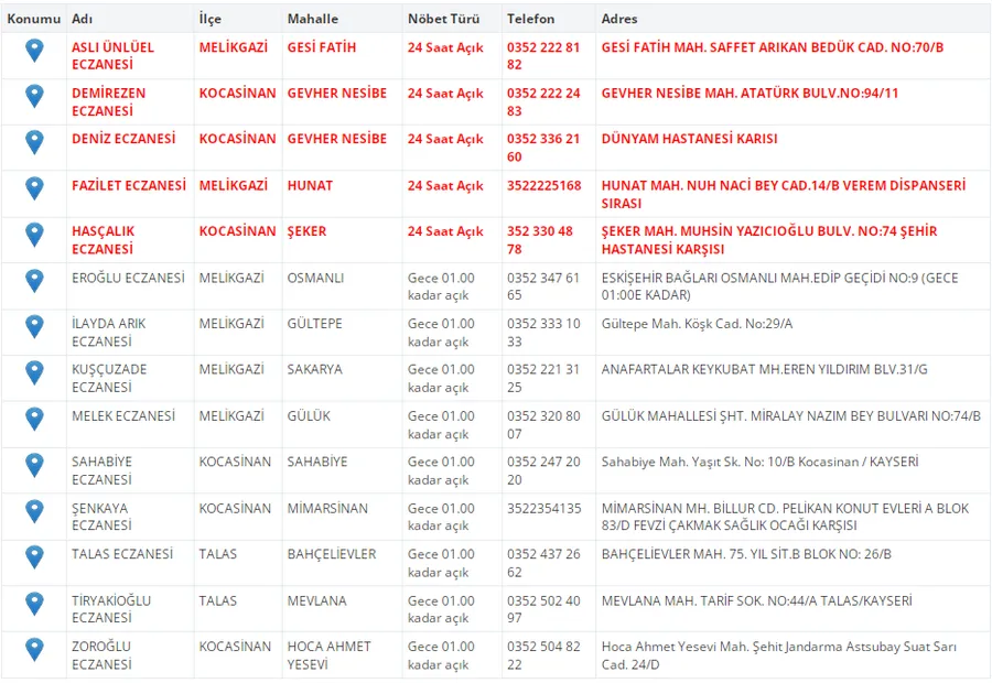 Kayseri'de bugünkü nöbetçi eczaneleri sizler için derledik. 18 Kasım 2025 Salı nöbetçi eczaneler listesine haberimizden ulaşabilirsiniz. İşte Kayseri'deki nöbetçi eczaneler, Kayseri Haber Gazetesi'nin haberlerinde...