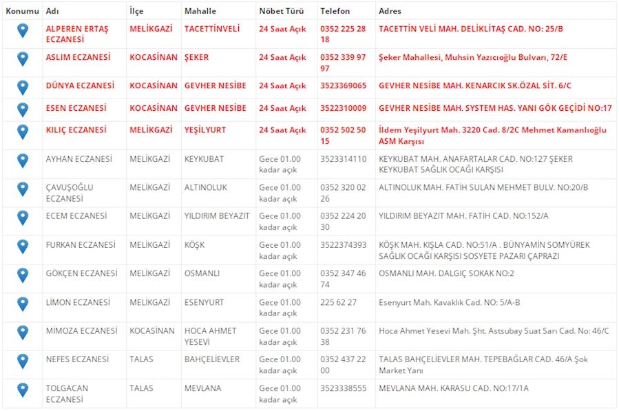Kayseri'de vatandaşların acil sağlık ihtiyaçları için nöbetçi eczaneler önemli bir yere sahip. Kayseri’nin bugünkü nöbetçi eczanelerini sizler için derledik. 31 Temmuz Perşembe nöbetçi eczaneler listesine buradan ulaşabilirsiniz. İşte 31 Temmuz nöbetçi eczaneler…