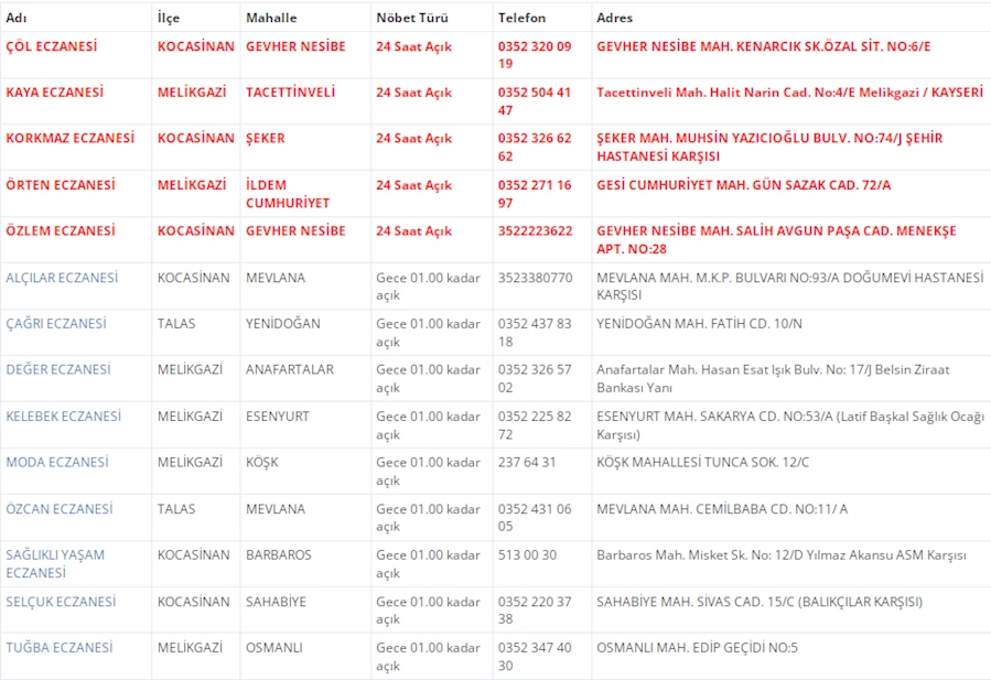 Kayseri'de vatandaşların acil sağlık ihtiyaçları için nöbetçi eczaneler önemli bir yere sahip. Kayseri’nin bugünkü nöbetçi eczanelerini sizler için derledik. 6 Aralık Cuma nöbetçi eczaneler listesine buradan ulaşabilirsiniz. İşte 6 Aralık nöbetçi eczaneler…