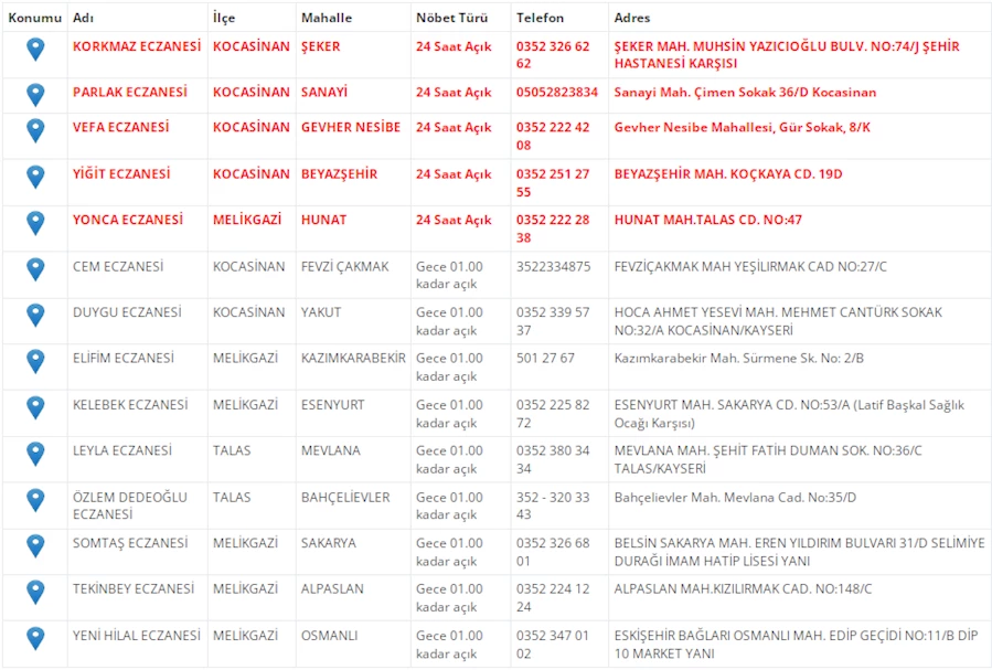 Kayseri'de vatandaşların acil sağlık ihtiyaçları için nöbetçi eczaneler önemli bir yere sahip. Kayseri’nin bugünkü nöbetçi eczanelerini sizler için derledik. 6 Mayıs Salı nöbetçi eczaneler listesine buradan ulaşabilirsiniz. İşte 6 Mayıs nöbetçi eczaneler…