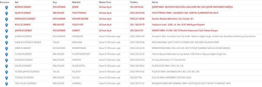 Kayseri'de vatandaşların acil sağlık ihtiyaçları için nöbetçi eczaneler önemli bir yere sahip. Kayseri’nin bugünkü nöbetçi eczanelerini sizler için derledik. 6 Nisan Pazar nöbetçi eczaneler listesine buradan ulaşabilirsiniz. İşte 6 Nisan nöbetçi eczaneler…
