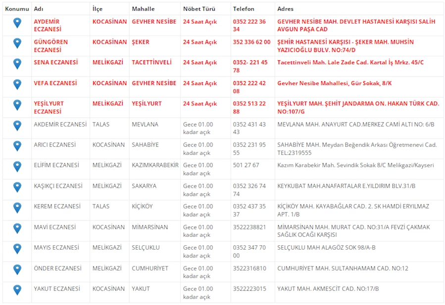 Kayseri'de bugünkü nöbetçi eczaneleri sizler için derledik. 6 Kasım 2025 Perşembe nöbetçi eczaneler listesine haberimizden ulaşabilirsiniz. İşte Kayseri'deki nöbetçi eczaneler, Kayseri Haber Gazetesi'nin haberlerinde...