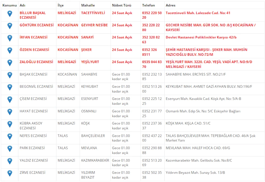 Kayseri'de vatandaşların acil sağlık ihtiyaçları için nöbetçi eczaneler önemli bir yere sahip. Kayseri’nin bugünkü nöbetçi eczanelerini sizler için derledik. 9 Nisan Çarşamba nöbetçi eczaneler listesine buradan ulaşabilirsiniz. İşte 9 Nisan nöbetçi eczaneler…