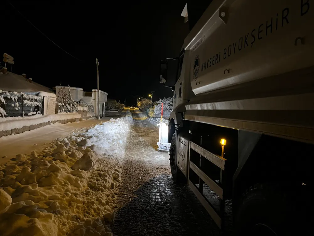 Kayseri Büyükşehir Belediyesi, kar yağışının etkisini sürdürdüğü süreçte vatandaşların güvenli ulaşımı için tüm ekipleriyle sahadaki çalışmalarına aralıksız devam ediyor.