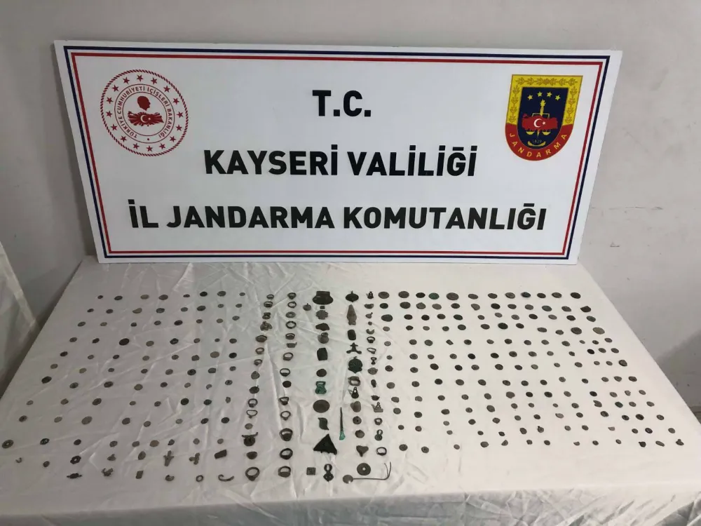Şüphelinin otomobilinde yapılan aramada, Roma ve Bizans dönemlerine ait olduğu değerlendirilen 241 sikke ve 87 tarihi obje ele geçirildi.