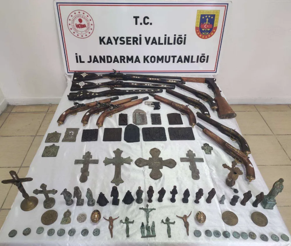 Kayseri'de, jandarma ekiplerince düzenlenen "Anadolu Mirası" operasyonunda toplam 80 adet tarihi eser ele geçirilirken, 1 kişi gözaltına alındı.