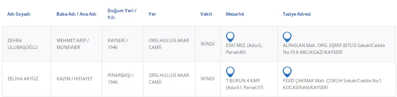 Kayseri’de bugün 2 vatandaşımızı kaybettik. Kayseri’de bugün vefat edenler kimler?