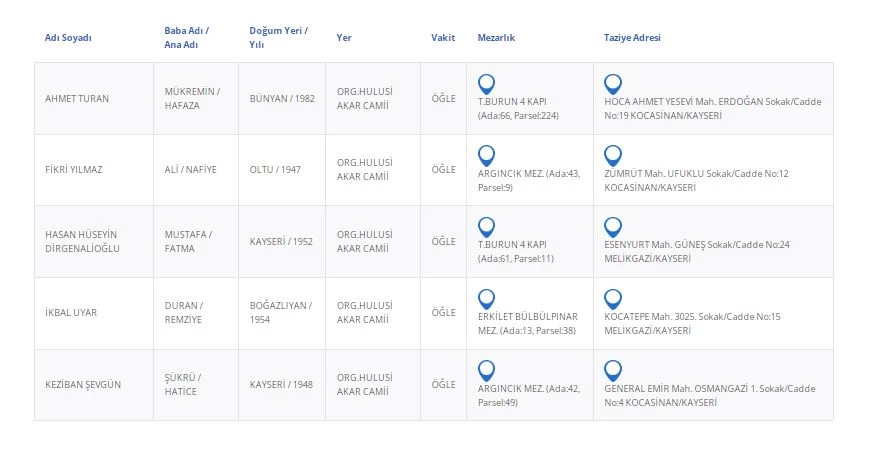 Kayseri’de bugün 5 vatandaşımızı kaybettik. Kayseri’de bugün vefat edenler kimler?