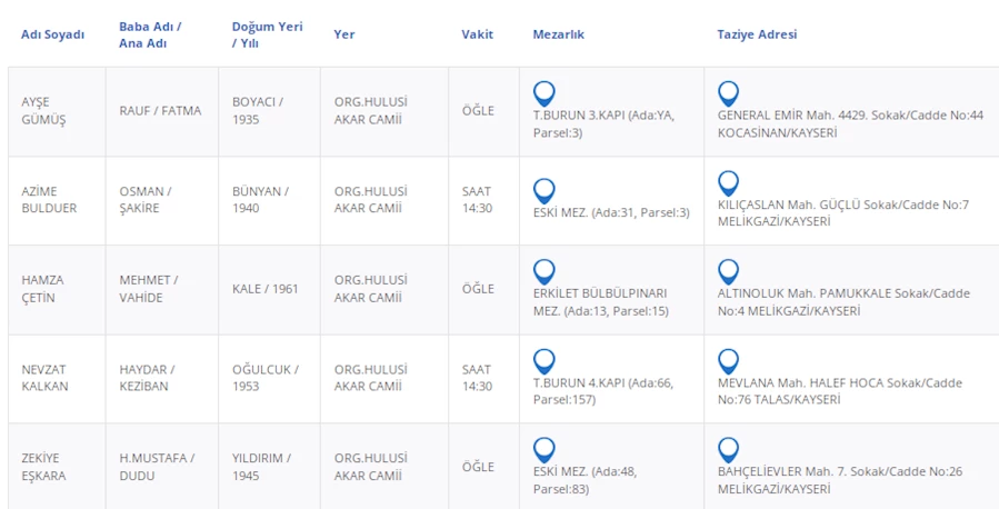 Kayseri’de bugün 5 vatandaşımızı kaybettik. Kayseri’de bugün vefat edenler kimler?