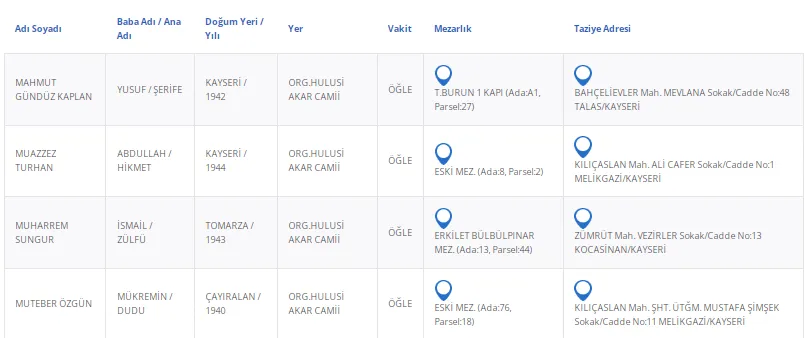 Kayseri’de bugün 4 vatandaşımızı kaybettik. Kayseri’de bugün vefat edenler kimler?