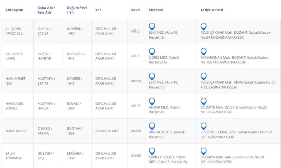 Kayseri’de bugün 6 vatandaşımızı kaybettik. Kayseri’de bugün vefat edenler kimler?