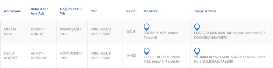 Kayseri’de bugün 2 vatandaşımızı kaybettik. Kayseri’de bugün vefat edenler kimler?