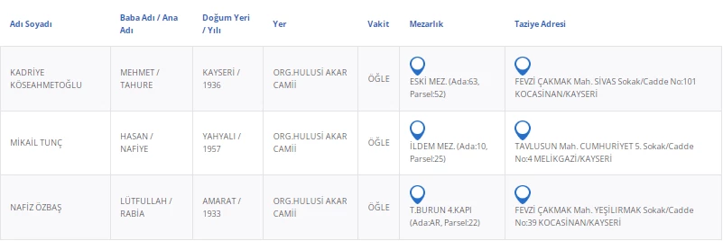Kayseri’de bugün 3 vatandaşımızı kaybettik. Kayseri’de bugün vefat edenler kimler?