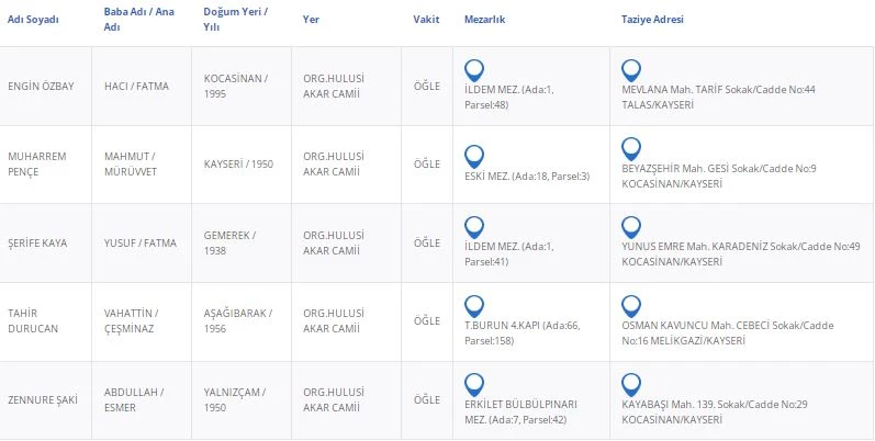ayseri’de bugün 5 vatandaşımızı kaybettik. Kayseri’de bugün vefat edenler kimler?