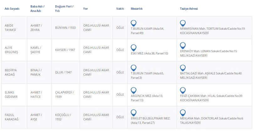 Kayseri’de bugün 5 vatandaşımızı kaybettik. Kayseri’de bugün vefat edenler kimler?