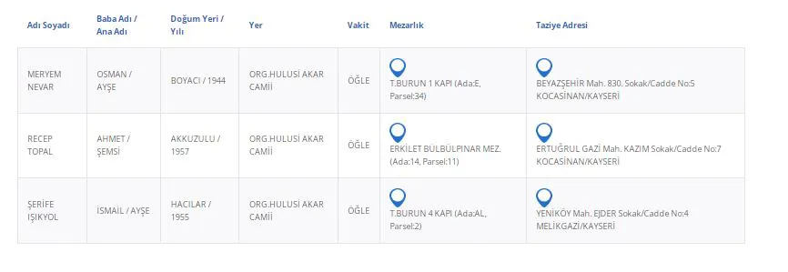 Kayseri’de bugün 3 vatandaşımızı kaybettik. Kayseri’de bugün vefat edenler kimler?