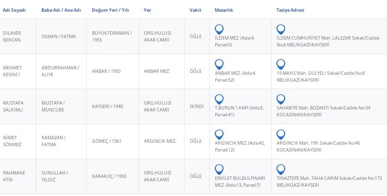 Kayseri’de bugün 5 vatandaşımızı kaybettik. Kayseri’de bugün vefat edenler kimler?