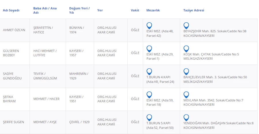 Kayseri’de bugün 5 vatandaşımızı kaybettik. Kayseri’de bugün vefat edenler kimler?