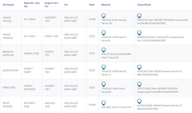Kayseri’de bugün 6 vatandaşımızı kaybettik. Kayseri’de bugün vefat edenler kimler?