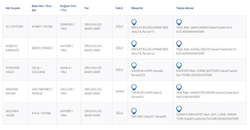 Kayseri’de bugün 5 vatandaşımızı kaybettik. Kayseri’de bugün vefat edenler kimler?