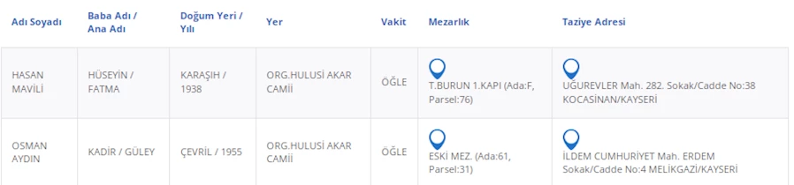 Kayseri’de bugün 2 vatandaşımızı kaybettik. Kayseri’de bugün vefat edenler kimler?