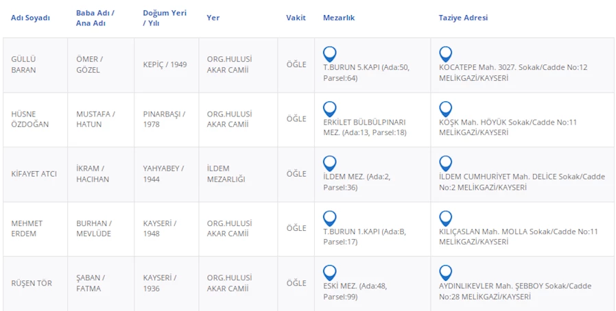Kayseri’de bugün 5 vatandaşımızı kaybettik. Kayseri’de bugün vefat edenler kimler?