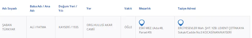Kayseri’de bugün 1 vatandaşımızı kaybettik. Kayseri’de bugün vefat edenler kimler?