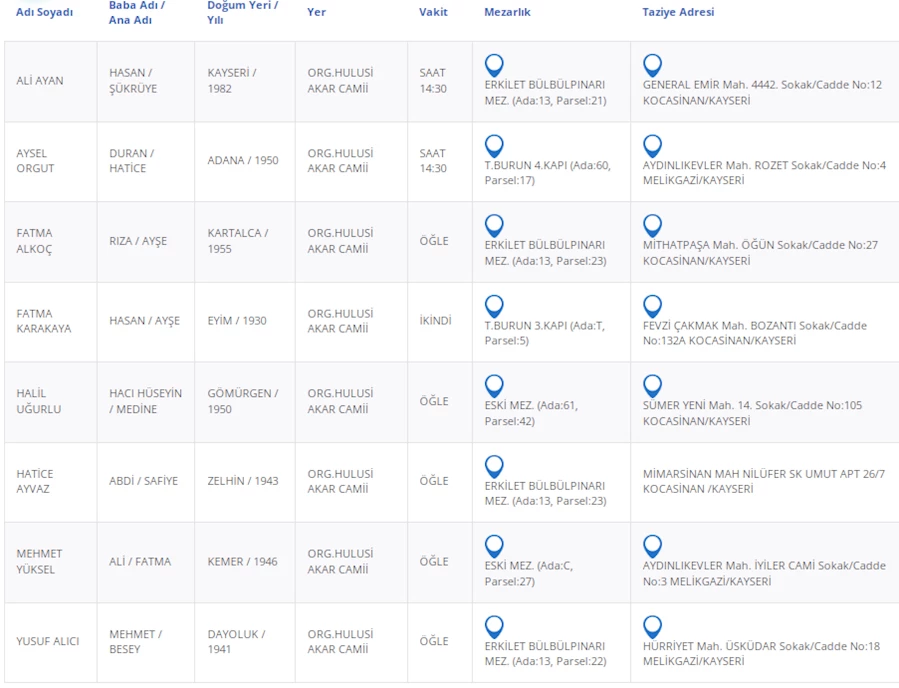 Kayseri’de bugün 8 vatandaşımızı kaybettik. Kayseri’de bugün vefat edenler kimler?