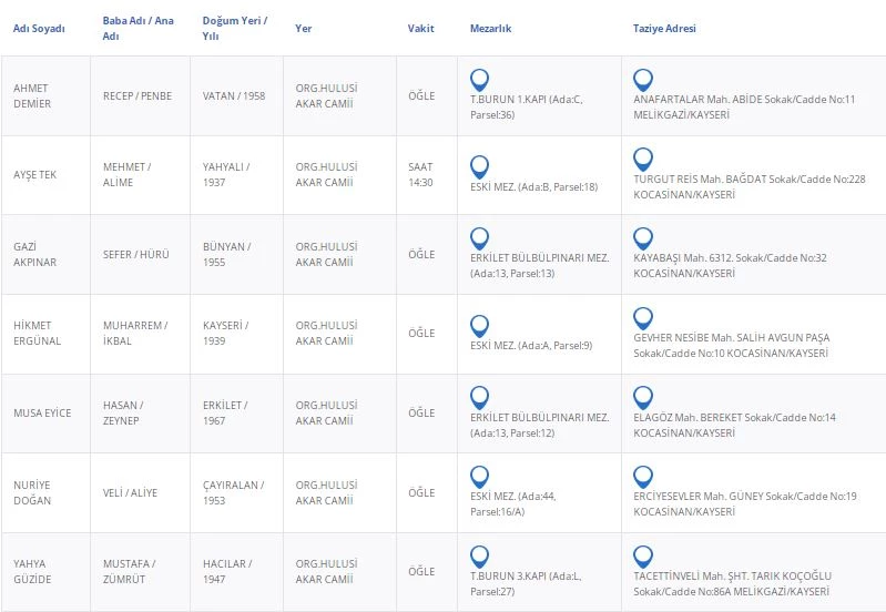 Kayseri’de bugün 7 vatandaşımızı kaybettik. Kayseri’de bugün vefat edenler kimler?