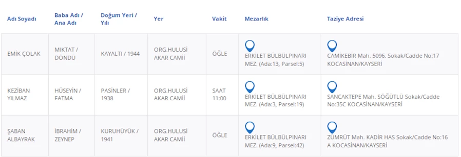 Kayseri’de bugün 3 vatandaşımızı kaybettik. Kayseri’de bugün vefat edenler kimler?