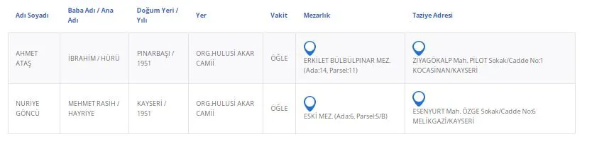 Kayseri’de bugün 2 vatandaşımızı kaybettik. Kayseri’de bugün vefat edenler kimler?
