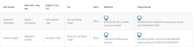 Kayseri’de bugün 2 vatandaşımızı kaybettik. Kayseri’de bugün vefat edenler kimler?