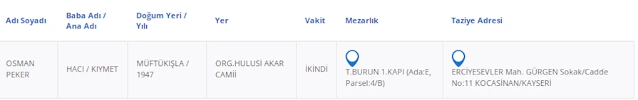 Kayseri’de bugün 1 vatandaşımızı kaybettik. Kayseri’de bugün vefat edenler kimler?