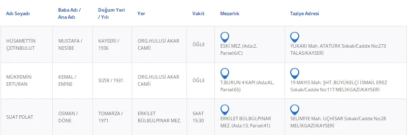 Kayseri’de bugün 3 vatandaşımızı kaybettik. Kayseri’de bugün vefat edenler kimler?