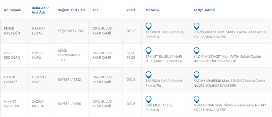 Kayseri’de bugün 4 vatandaşımızı kaybettik. Kayseri’de bugün vefat edenler kimler?