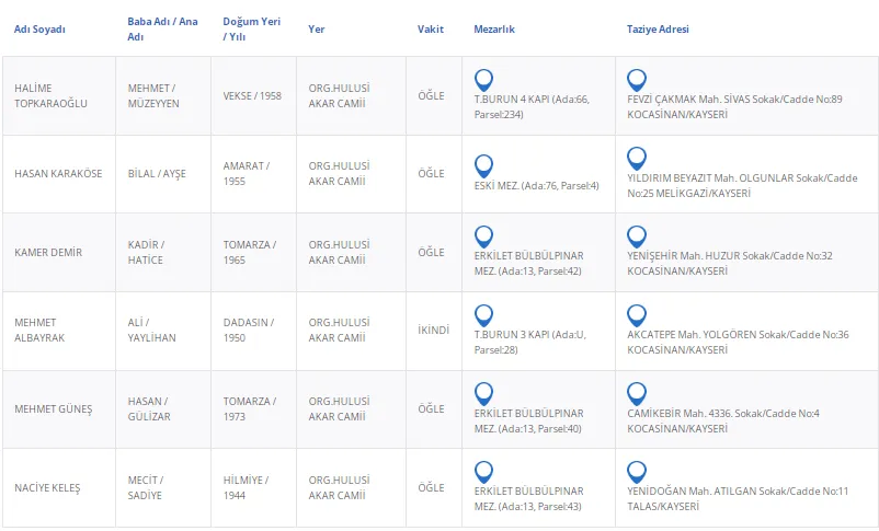 Kayseri’de bugün 6 vatandaşımızı kaybettik. Kayseri’de bugün vefat edenler kimler?